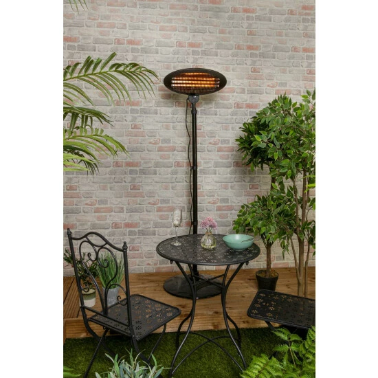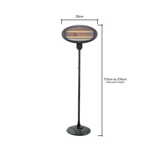 Dimensions (HD): 173 x 50cm. Adjustable height of up to: 100cm. Weight: 9.6kg. Material: Metal. Heating Distribution: 12m Sq. IPX4 Rated. Remove light from fitting and wipe carefully with a clean, dry cloth. Requires self-assembly (instructions included)