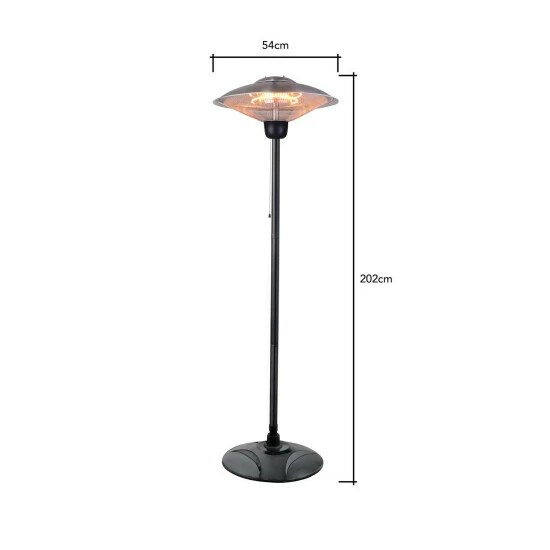 Dimensions (HD): 202 x 54cm. Weight: 13.5kg. Material: Metal. Heating Distribution: 20m Sq. IP34 Rated. Remove light from fitting and wipe carefully with a clean, dry cloth. Requires self-assembly (instructions included)