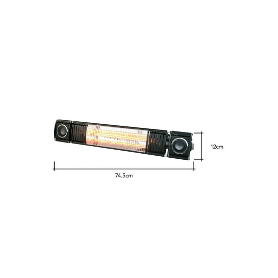 Dimensions (HW): 12 x 11cm Weight: 3.5kgMaterial: Metal Heating Distribution: 12m SqIP66 Rated. Remove light from fitting and wipe carefully with a clean, dry cloth. Requires self-assembly (instructions included)