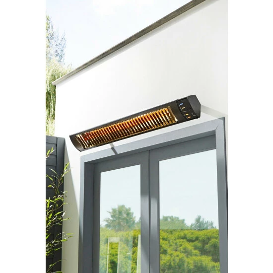 Dimensions (HW): 18.8 x 19.5cm Weight: 7.8kg Material: Metal Heating Distribution: 24m SqIP55 Rated. Remove light from fitting and wipe carefully with a clean, dry cloth. Requires self-assembly (instructions included)
