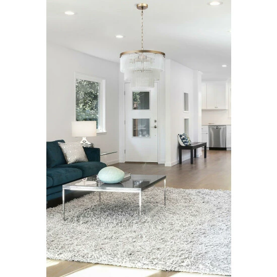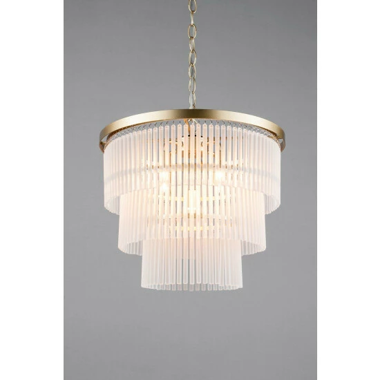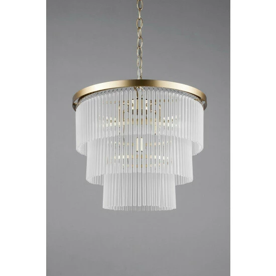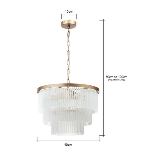 Dimensions (HD): 34 x 40cm. Adjustable cable length of up to: 120cm. Weight: 6.94kg. Material: Metal. Electrical class I. Not suitable for use with dimmer switches. Bulb type: Maximum 28W G9. Number of bulbs required: 5 (not included). Remove light from fitting and wipe carefully with a clean, dry cloth. Requires self-assembly (instructions included). Includes 2 year warranty