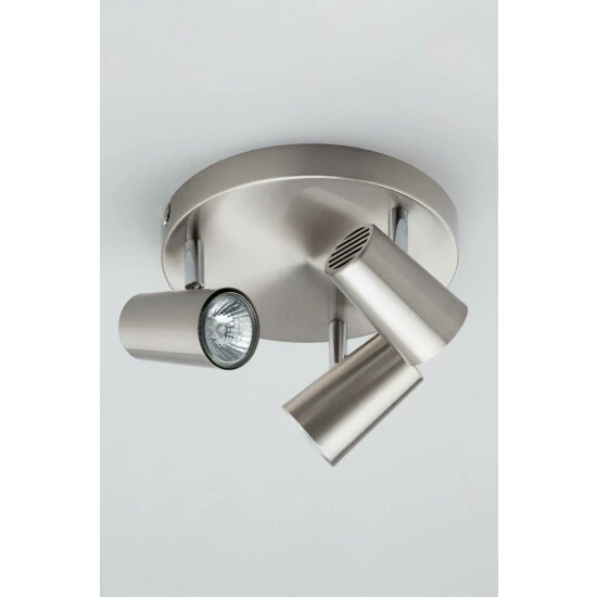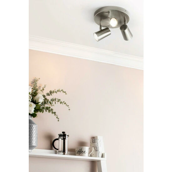 Dimensions (HD): 14 x 26cm. Weight: 0.85kg. Material: Metal. Electrical class I. Not suitable for use with dimmer switches. Bulb type: Maximum 35W GU10. Number of bulbs required: 3 (not included). Remove light from fitting and wipe carefully with a clean, dry cloth. Requires self-assembly (instructions included). Includes 2 year warranty