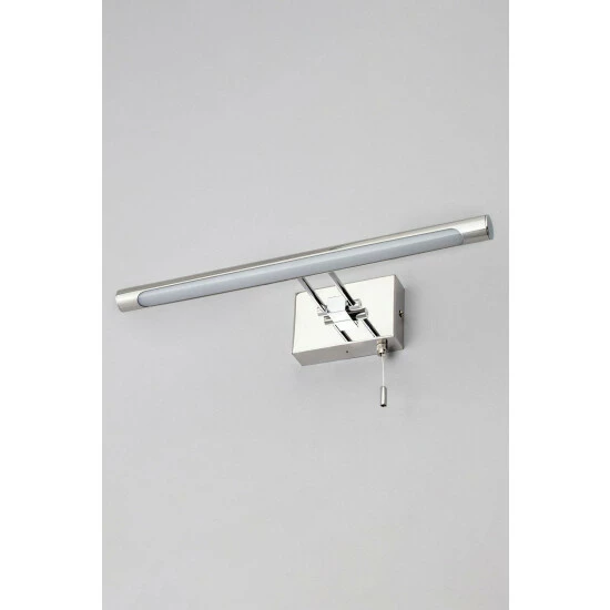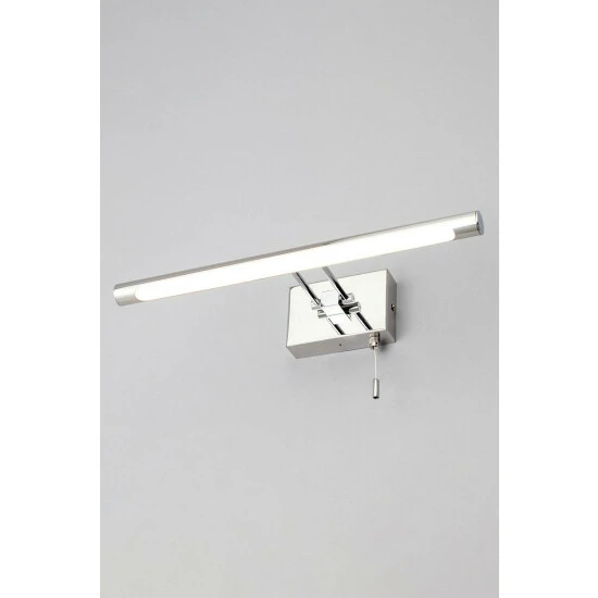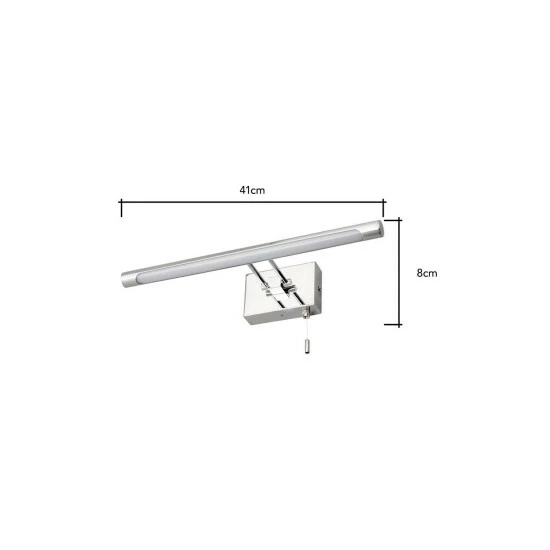 Dimensions (HL): 8 x 41cm. Weight: 0.74kg. Material: Chrome. Electrical class I. Bulb type: LED Integrated. IP44 Rated. Remove light from fitting and wipe carefully with a clean, dry cloth. Requires self-assembly (instructions included). Includes 2 year warranty
