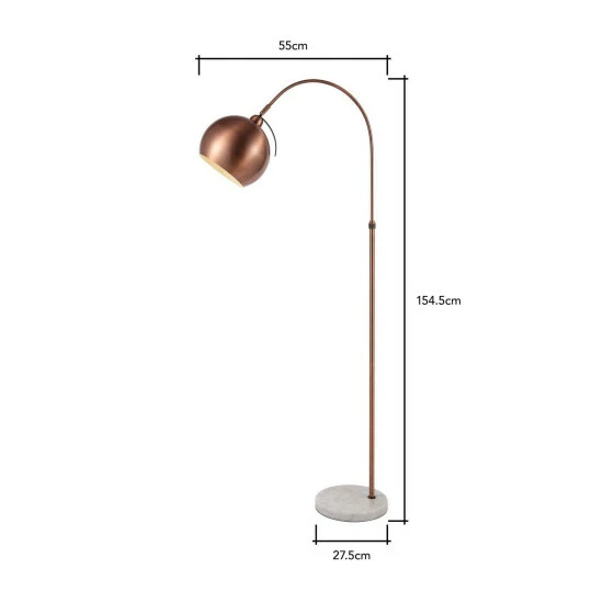 Dimensions (HWL): 154.5 x 27.5 x 55cm. Weight: 8.24kg. Material: Metal. Electrical class II. Bulb type: Maximum 13W E27 Edison Screw. Number of bulbs required: 1 (not included). Remove light from fitting and wipe carefully with a clean, dry cloth. Includes 2 year warranty