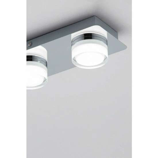 Dimensions (HW): 6.5 x 11cm. Weight: 1.17kg. Material: Chrome. Electrical class II. Not suitable for use with dimmer switches. Bulb type: LED Integrated. IP44 Rated. Remove light from fitting and wipe carefully with a clean, dry cloth. Requires self-assembly (instructions included).
