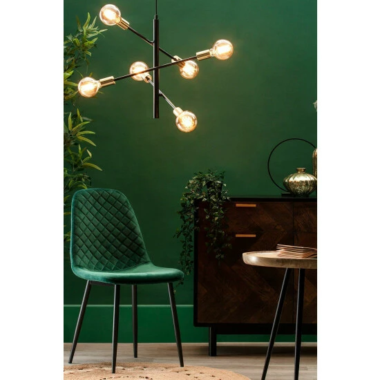 Dimensions (HD): 148 x 48cm. Adjustable cable length of up to: 117cm. Weight: 1.24kg. Material: Metal. Electrical class I. Bulb type: Maximum 6W E27 Edison Screw. Number of bulbs required: 6 (not included). Remove light from fitting and wipe carefully with a clean, dry cloth. Includes 2 year warranty