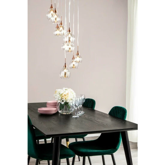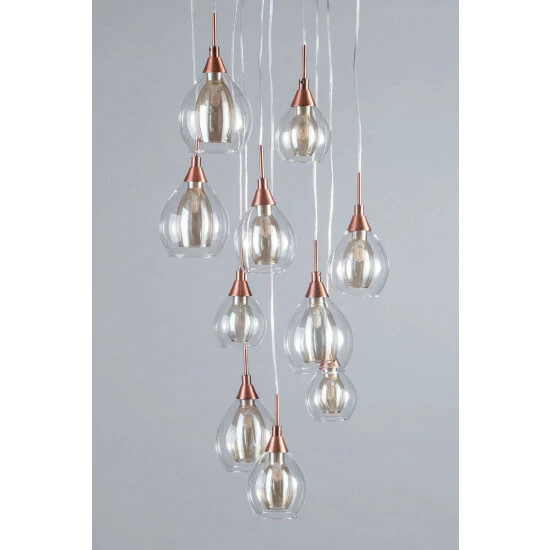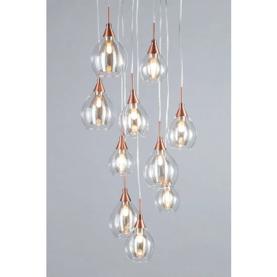 Dimensions (D): 35cm. Adjustable cable length of up to: 115cm. Weight: 3.18kg. Material: Metal. Electrical class I. Not suitable for use with dimmer switches. Bulb type: Maximum 28W G9. Number of bulbs required: 10 (not included). Remove light from fitting and wipe carefully with a clean, dry cloth. Requires self-assembly (instructions included). Includes 2 year warranty