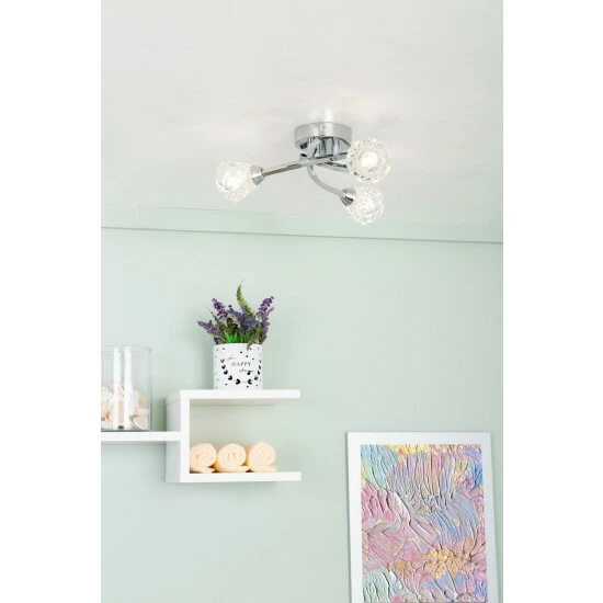 Dimensions (HD): 14 x 36cm. Weight: 1.6kg. Material: Metal. Electrical class II. Not suitable for use with dimmer switches. Bulb type: Maximum 3W G9. Number of bulbs required: 3 (not included). IP44 Rated. Remove light from fitting and wipe carefully with a clean, dry cloth. Requires self-assembly (instructions included)