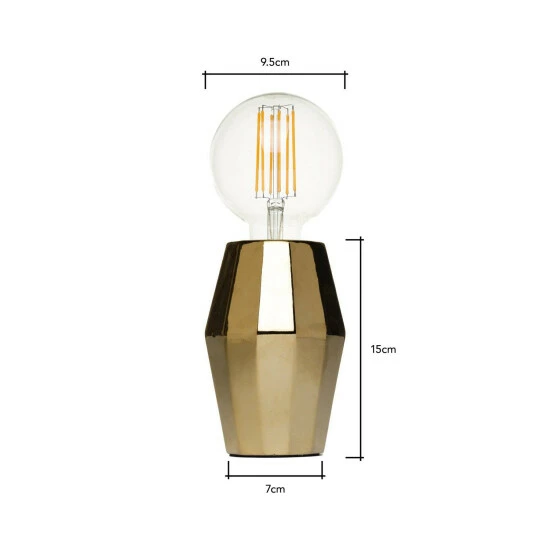 Dimensions (HW): 15 x 9.5cm. Weight: 0.96kg. Material: Metal. Not suitable for use with dimmer switches. Max Wattage: 6 Watt. Bulb type: E27. Requires self-assembly (instructions included).