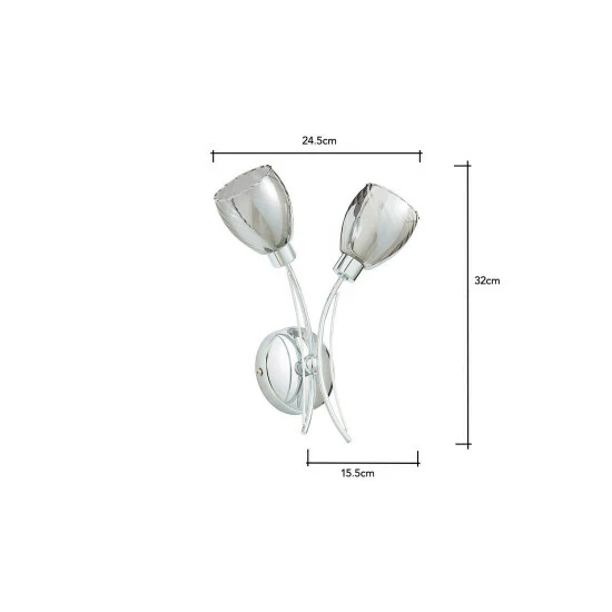 Dimensions (HW): 32 x 24.5cm. Weight: 0.4kg. Material: Metal. Not suitable for use with dimmer switches. Bulb type: Maximum 3W G9. Number of bulbs required: 2 (not included). IP44 Rated. Remove light from fitting and wipe carefully with a clean, dry cloth. Requires self-assembly (instructions included)
