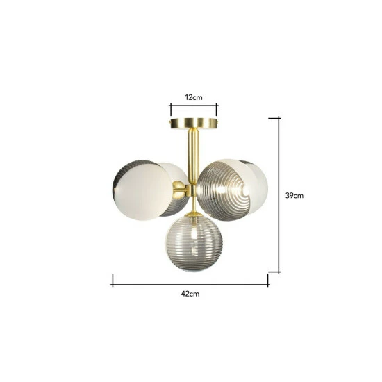 Dimensions (HD): 39 x 42cm. Weight: 2.38kg. Material: Metal. Bulb type: Maximum 3W, G9. Number of bulbs required: 5 (not included). Remove light from fitting and wipe carefully with a clean, dry cloth. Requires self-assembly (instructions included)