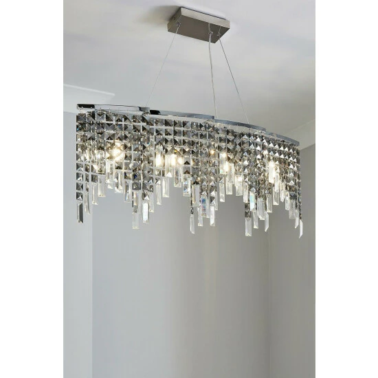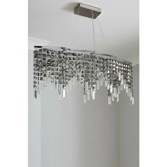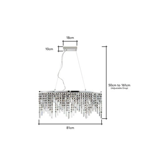 Dimensions (HW): 161 x 20cm. Adjustable cable length of up to: 161cm. Material: Glass. Not suitable for use with dimmer switches. Bulb type: Maximum 3W G9. Number of bulbs required: 4 (Not Included). Remove light from fitting and wipe carefully with a clean, dry cloth. Requires self-assembly (instructions included)