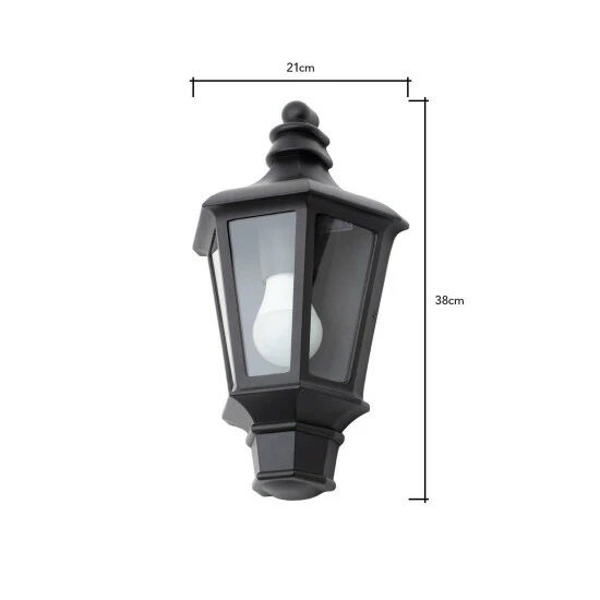 Dimensions (HW): 38 x 21cm. Weight: 1.08kg. Material: Metal. Electrical class I. Not suitable for use with dimmer switches. Bulb type: Maximum 42W E27 Edison Screw. Number of bulbs required: 1 (not included). IP44 Rated. Remove light from fitting and wipe carefully with a clean, dry cloth. Requires self-assembly (instructions included).