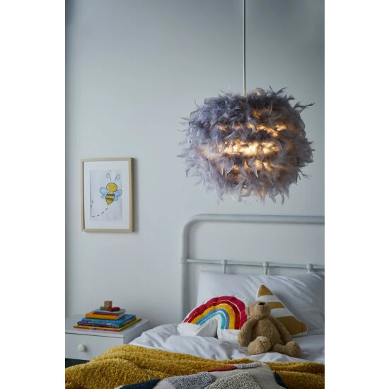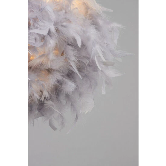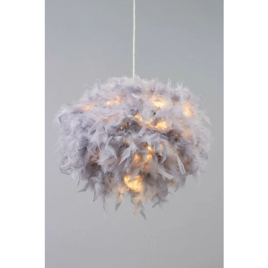 Dimensions (HD): 40 x 40cm.Weight: 1kg.Material: Feather.Bulb type: Maximum 10W Fits over Existing Fixture.Remove light from fitting and wipe carefully with a clean, dry cloth.