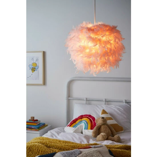 Dimensions (HD): 40 x 40cm.Weight: 0.96kg.Material: Feather.Bulb type: Maximum 10W, Fits over Existing Fixture.Remove light from fitting and wipe carefully with a clean, dry cloth.