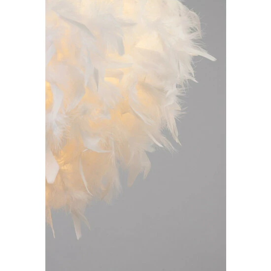 Dimensions (HD): 40 x 40cm.Weight: 0.96kg.Material: Feather.Bulb type: Maximum 10W, Fits over Existing Fixture.Remove light from fitting and wipe carefully with a clean, dry cloth.