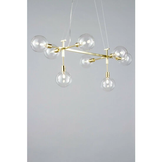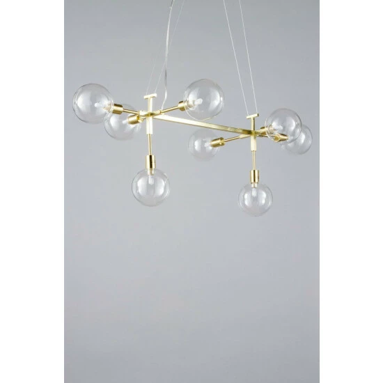 Dimensions (HLW): 35 x 97 x 50cm. Adjustable cable length of up to: 98cm. Material: Metal. Bulb type: Maximum 3W G9. Number of bulbs required: 8 (not included). Remove light from fitting and wipe carefully with a clean, dry cloth.