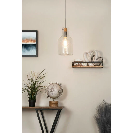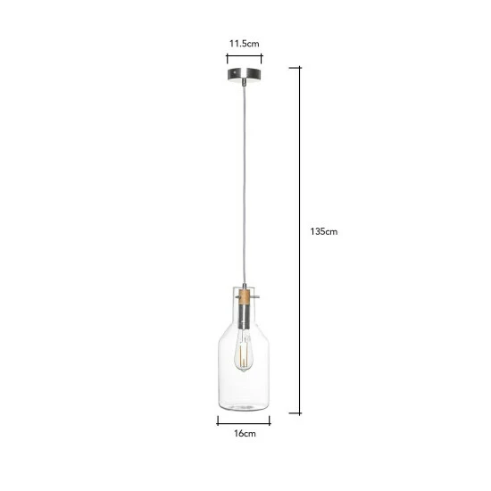 Dimensions (HW): 135 x 16cm. Weight: 1.5kg. Material: Metal / Glass / Wood. Not suitable for use with dimmer switches. Max Wattage: 10 Watt. Bulb type: E27. Requires self-assembly (instructions included).