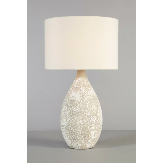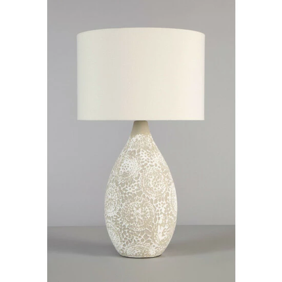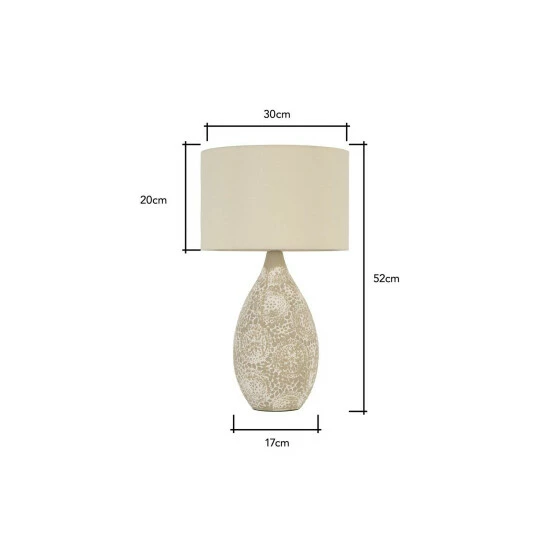 Dimensions (HD): 52 x 30cm. Weight: 1.66kg. Material: Ceramic, Fabric. Bulb type: Maximum 6W E14 Small Edison Screw. Number of bulbs required: 1 (not included). Remove light from fitting and wipe carefully with a clean, dry cloth. Requires self-assembly (instructions included)