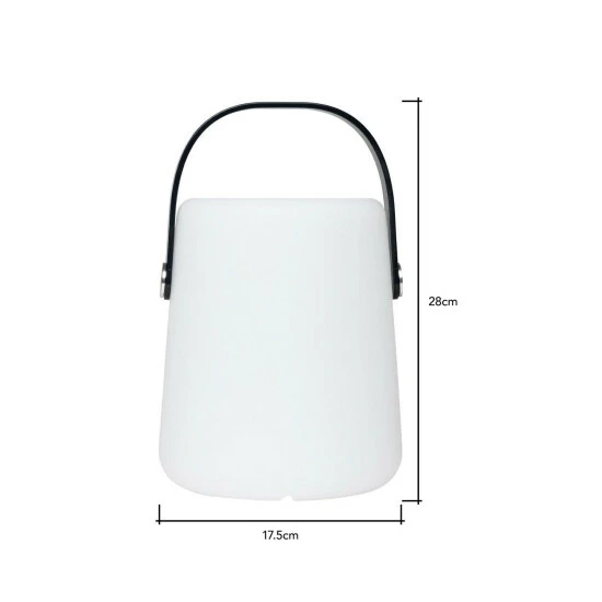 Dimensions (HD): 28 x 17.5cm. Weight: 0.86kg. Material: Plastic. Rechargeable Battery Operated. Charges Via USB. Adapter Not Included. Bulb type: LED Integrated. IP54 Rated. Remove light from fitting and wipe carefully with a clean, dry cloth. Requires self-assembly (instructions included)