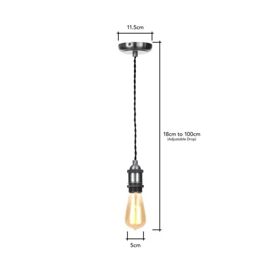 Dimensions (D): 5cm. Adjustable cable length of up to: 100cm. Weight: 0.36kg. Material: Chrome. Electrical class I. Suitable for use with dimmer switches. Bulb type: Maximum 42W E27 Edison Screw. Number of bulbs required: 1 (not included). Remove light from fitting and wipe carefully with a clean, dry cloth. Requires self-assembly (instructions included). Includes 2 year warranty