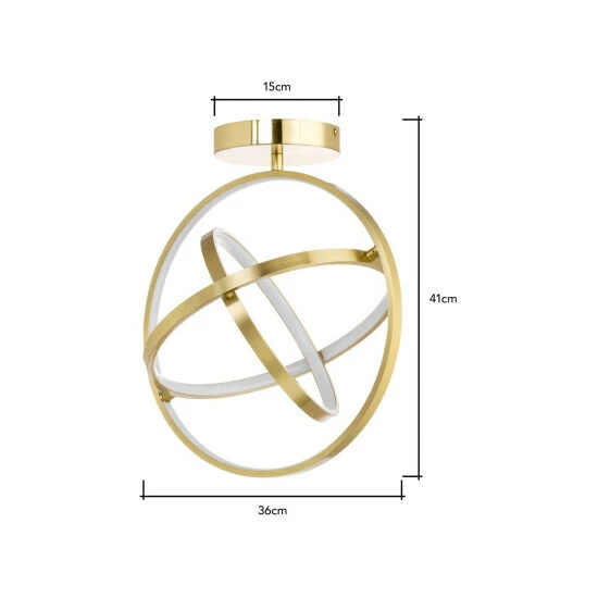 Dimensions (HD): 41 x 36cm. Weight: 1.32kg. Material: Metal, Acrylic. Bulb type: LED Integrated. Remove light from fitting and wipe carefully with a clean, dry cloth.