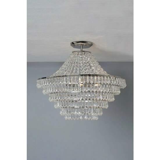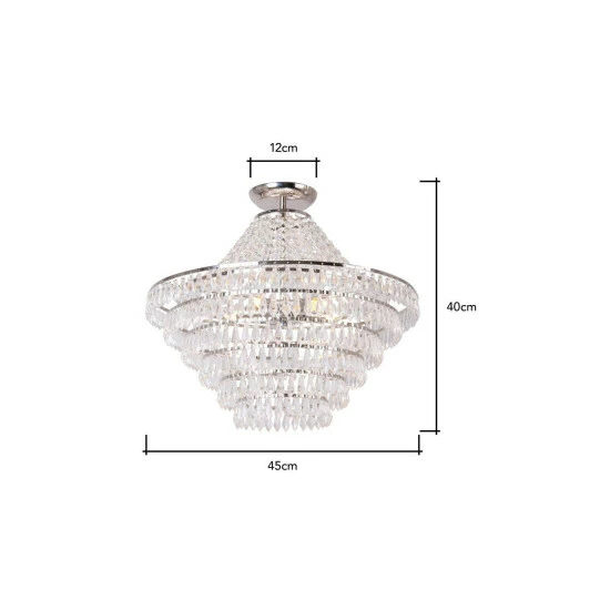 Dimensions (HD): 40 x 45cm. Weight: 5.3kg. Material: Glass. Electrical class I. Not suitable for use with dimmer switches. Bulb type: Maximum 28W G9. Number of bulbs required: 5 (not included). Remove light from fitting and wipe carefully with a clean, dry cloth. Requires self-assembly (instructions included). Includes 2 year warranty