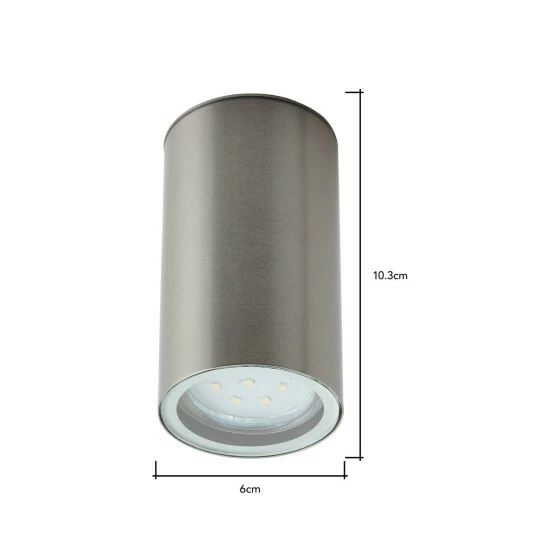 Dimensions (HD): 10.3 x 6cm. Weight: 0.4kg. Material: Metal. Electrical class I. Not suitable for use with dimmer switches. Bulb type: Maximum 7W GU10. Number of bulbs required: 1 (not included). IP44 Rated. Remove light from fitting and wipe carefully with a clean, dry cloth. Requires self-assembly (instructions included)