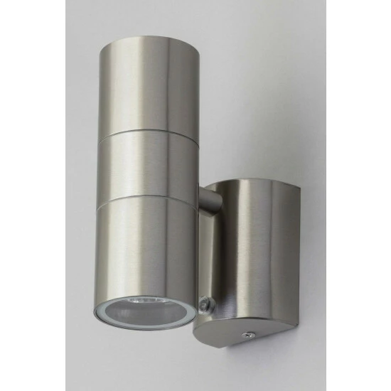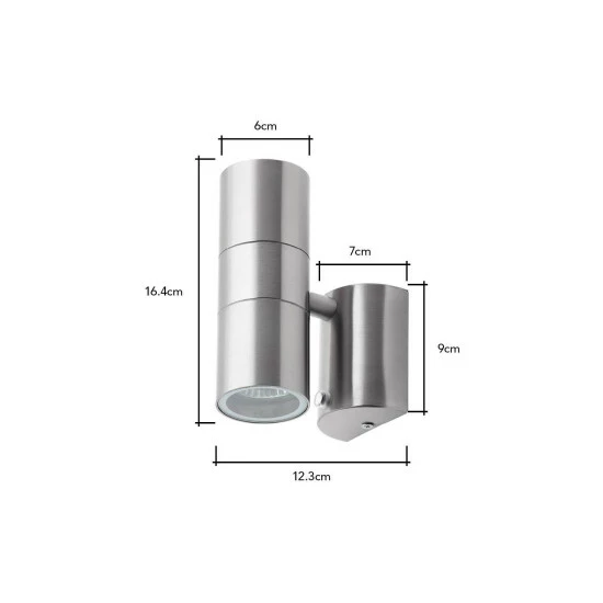 Dimensions (HDW): 16.4 x 6 x 7cm. Weight: 0.76kg. Material: Metal. Electrical class I. Not suitable for use with dimmer switches. Bulb type: Maximum 8W GU10. Number of bulbs required: 2 (not included). IP44 Rated. Remove light from fitting and wipe carefully with a clean, dry cloth. Requires self-assembly (instructions included)