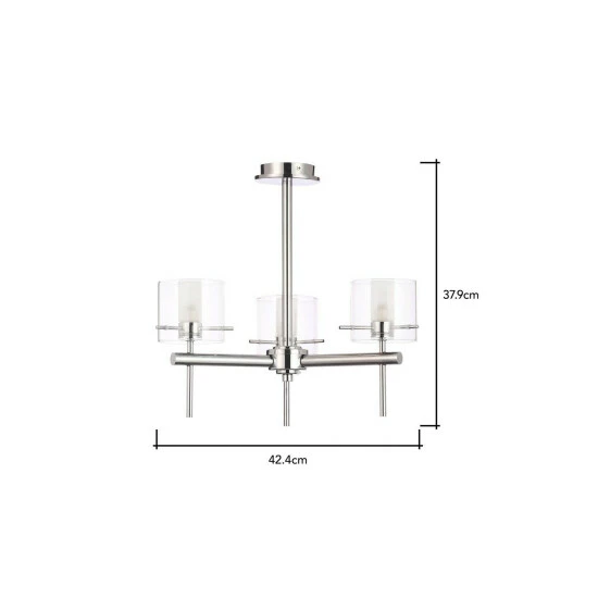 Dimensions (HD): 37.9 x 42.4cm. Weight: 1.58kg. Material: Chrome. Electrical class I. Not suitable for use with dimmer switches. Bulb type: Maximum 18W G9. Number of bulbs required: 3 (not included). IP44 Rated. Remove light from fitting and wipe carefully with a clean, dry cloth. Requires self-assembly (instructions included).