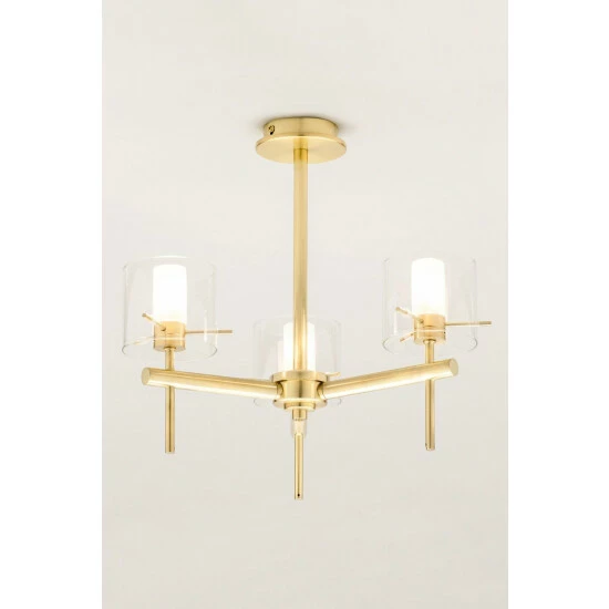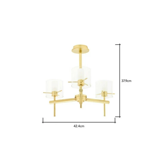 Dimensions (HD): 37.9 x 42.4cm. Weight: 1.58kg. Material: Brass. Electrical class I. Not suitable for use with dimmer switches. Bulb type: Maximum 18W G9. Number of bulbs required: 3 (not included). IP44 Rated. Remove light from fitting and wipe carefully with a clean, dry cloth. Requires self-assembly (instructions included).