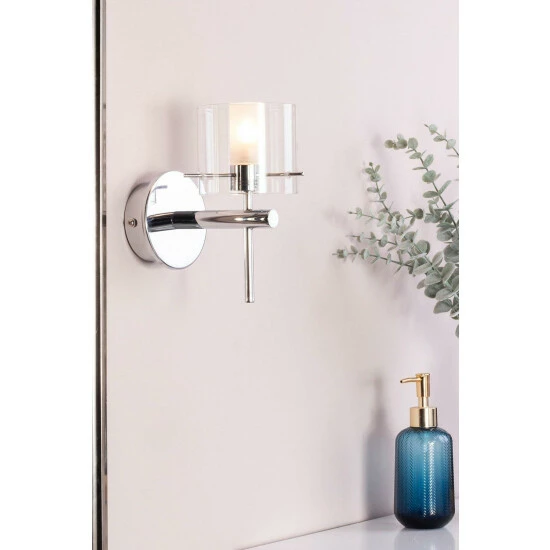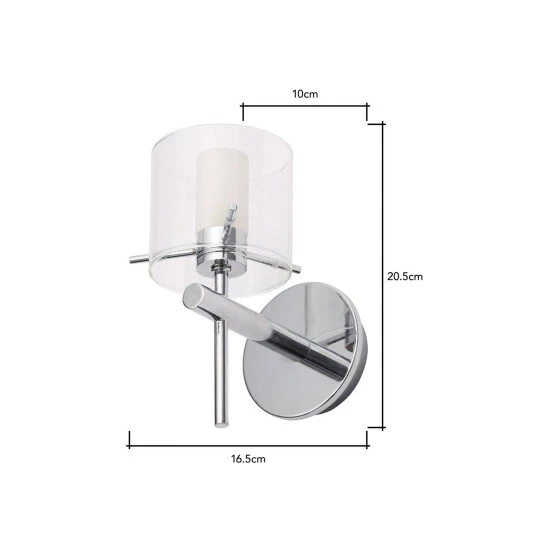 Dimensions (HW): 20.5 x 10cm. Weight: 0.55kg. Material: Chrome. Electrical class I. Not suitable for use with dimmer switches. Bulb type: Maximum 18W G9. Number of bulbs required: 1 (not included). IP44 Rated. Remove light from fitting and wipe carefully with a clean, dry cloth. Requires self-assembly (instructions included).