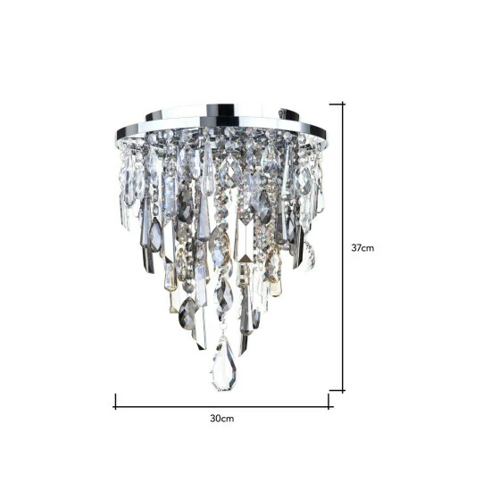 Dimensions (HD): 37 x 30cm. Weight: 3.84kg. Material: Metal. Electrical class I. Suitable for use with dimmer switches. Bulb type: Maximum 28W G9. Number of bulbs required: 3 (not included). Remove light from fitting and wipe carefully with a clean, dry cloth. Requires self-assembly (instructions included). Includes 2 year warranty