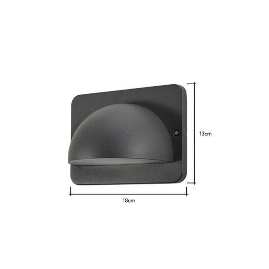 Dimensions (HW): 13 x 18cm. Weight: 0.4kg. Material: Metal. Electrical class I. Not suitable for use with dimmer switches. Bulb type: LED Integrated. IP54 Rated. Remove light from fitting and wipe carefully with a clean, dry cloth. Requires self-assembly (instructions included)
