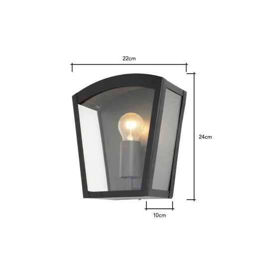 Dimensions (HW): 24 x 22cm. Weight: 1.92kg. Material: Metal. Electrical class I. Not suitable for use with dimmer switches. Bulb type: Maximum 42W E27 Edison Screw. Number of bulbs required: 1 (not included). IP44 Rated. Remove light from fitting and wipe carefully with a clean, dry cloth. Requires self-assembly (instructions included).