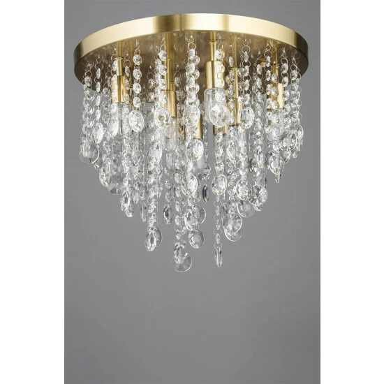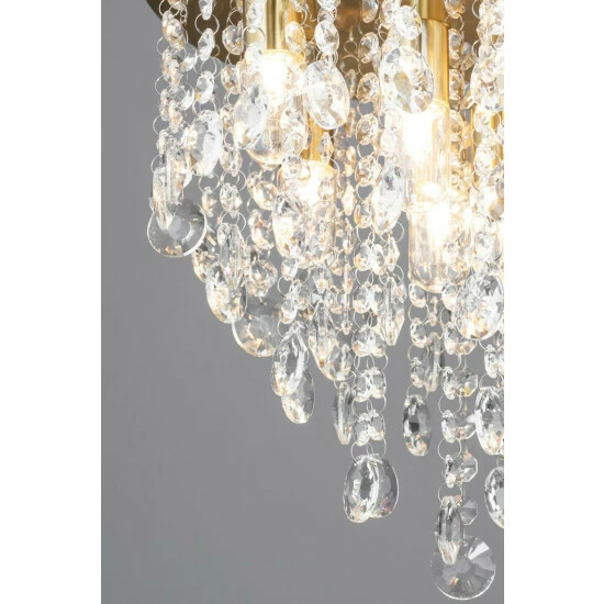 Dimensions (HD): 40 x 35cm. Weight: 3.46kg. Material: Brass. Electrical class I. Bulb type: Maximum 28W G9. Number of bulbs required: 9 (not included). IP44 Rated. Remove light from fitting and wipe carefully with a clean, dry cloth. Requires self-assembly (instructions included). Includes 2 year warranty