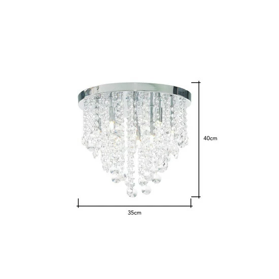 Dimensions (HD): 40 x 35cm. Weight: 3.46kg. Material: Metal. Electrical class I. Bulb type: Maximum 28W G9. Number of bulbs required: 9 (not included). IP44 Rated. Remove light from fitting and wipe carefully with a clean, dry cloth. Requires self-assembly (instructions included). Includes 2 year warranty