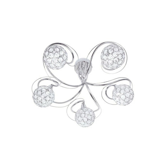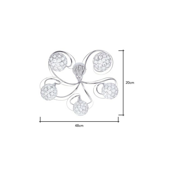 Dimensions (HD): 20 x 48cm. Weight: 3.62kg. Material: Chrome. Electrical class I. Not suitable for use with dimmer switches. Bulb type: Maximum 28W G9. Number of bulbs required: 5 (not included). Remove light from fitting and wipe carefully with a clean, dry cloth. Requires self-assembly (instructions included)