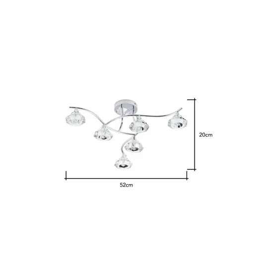 Dimensions (HD): 20 x 52cm. Weight: 4.4kg. Material: Metal. Electrical class I. Bulb type: Maximum 28W G9. Number of bulbs required: 6 (not included). IP44 Rated. Remove light from fitting and wipe carefully with a clean, dry cloth. Requires self-assembly (instructions included). Includes 2 year warranty