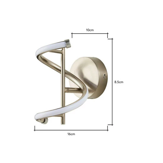 Dimensions (HW): 8.5 x 10.5cm. Weight: 0.38kg. Material: Metal. Bulb type: LED Integrated. Remove light from fitting and wipe carefully with a clean, dry cloth. Requires self-assembly (instructions included)