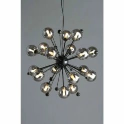 Dimensions (HD): 60 x 57cm. Adjustable height of up to: 160cm. Material: Metal. Bulb type: Maximum 3W G9. Number of bulbs required: 18 (not included). Remove light from fitting and wipe carefully with a clean, dry cloth.