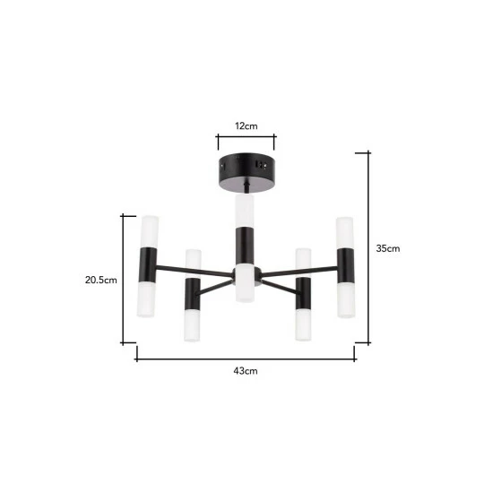 Dimensions (HD): 35 x 43cm. Weight: 3kg. Material : Metal, Glass with Frosted finish. Electrical class I. Bulb type: LED Integrated. Remove light from fitting and wipe carefully with a clean, dry cloth. Requires self-assembly (instructions included). Includes 2 year warranty