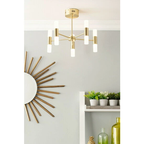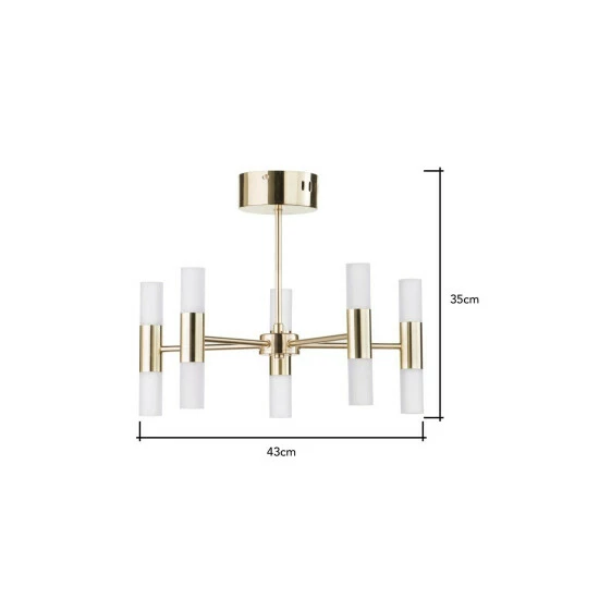 Dimensions (HD): 34.5 x 43cm. Weight: 3.28kg. Material: Metal. Electrical class I. Not suitable for use with dimmer switches. Bulb type: LED Integrated. Remove light from fitting and wipe carefully with a clean, dry cloth. Requires self-assembly (instructions included). Includes 2 year warranty
