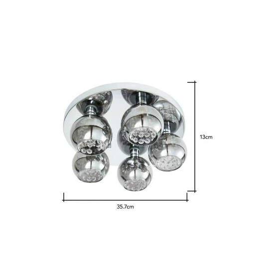 Dimensions (HD): 13 x 35.7cm. Weight: 2.15kg. Material: Metal. Electrical class I. Not suitable for use with dimmer switches. Bulb type: Maximum 3W G9. Number of bulbs required: 5 (not included). IP44 Rated. Remove light from fitting and wipe carefully with a clean, dry cloth. Requires self-assembly (instructions included)