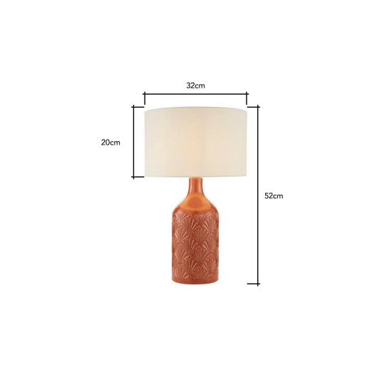 Dimensions (HD): 52 x 32cm. Weight: 2.9kg. Material: Ceramic. Bulb type: Maximum 6W E14 Small Edison Screw. Number of bulbs required: 1 (not included). Remove light from fitting and wipe carefully with a clean, dry cloth. Requires self-assembly (instructions included)