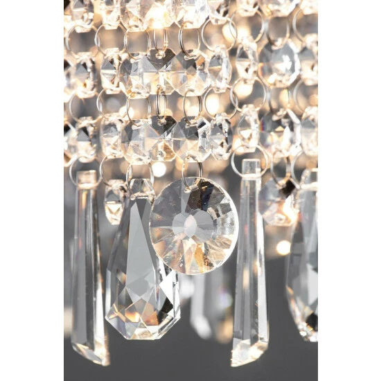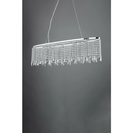 Dimensions (HWL): 130 x 18 x 100cm. Adjustable cable length of up to: 130cm. Weight: 4.5kg. Material: Metal. Electrical class I. Bulb type: Maximum 2.3W G9. Number of bulbs required: 5 (not included). Remove light from fitting and wipe carefully with a clean, dry cloth. Includes 2 year warranty