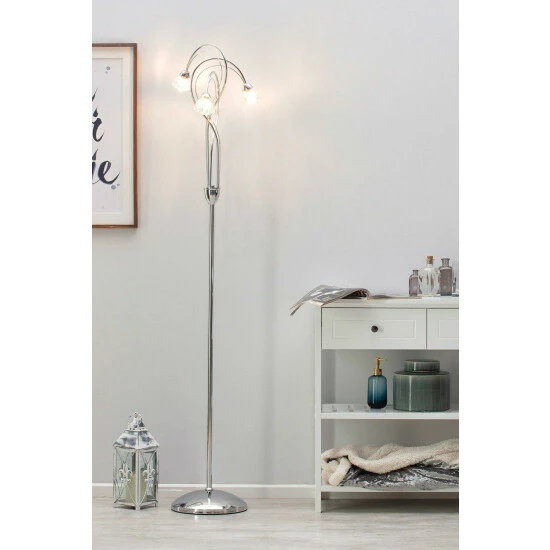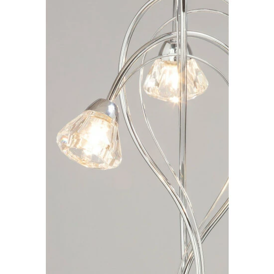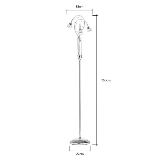 Dimensions (H): 163cm. Weight: 7.54kg. Material: Metal. Electrical class II. Bulb type: Maximum 28W G9. Number of bulbs required: 3 (not included). Remove light from fitting and wipe carefully with a clean, dry cloth. Requires self-assembly (instructions included). Includes 2 year warranty