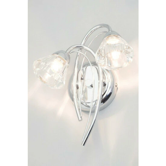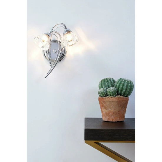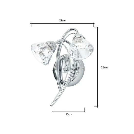 Dimensions (HWD): 26 x 21 x 19cm. Weight: 1.3kg. Material: Metal. Electrical class I. Not suitable for use with dimmer switches. Bulb type: Maximum 28W G9. Number of bulbs required: 2 (not included). Remove light from fitting and wipe carefully with a clean, dry cloth. Requires self-assembly (instructions included). Includes 2 year warranty