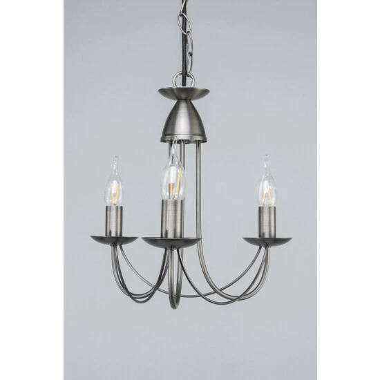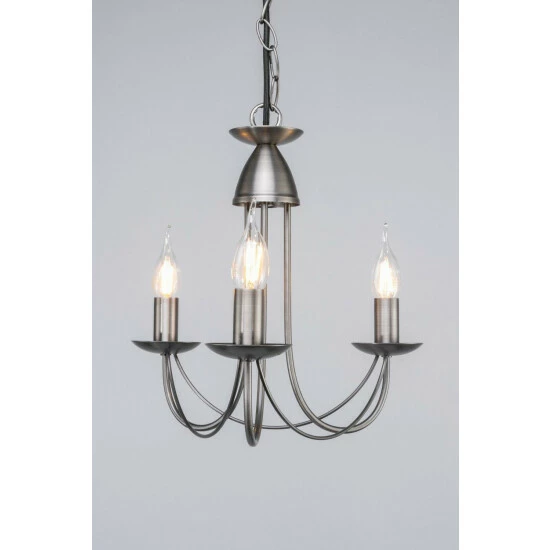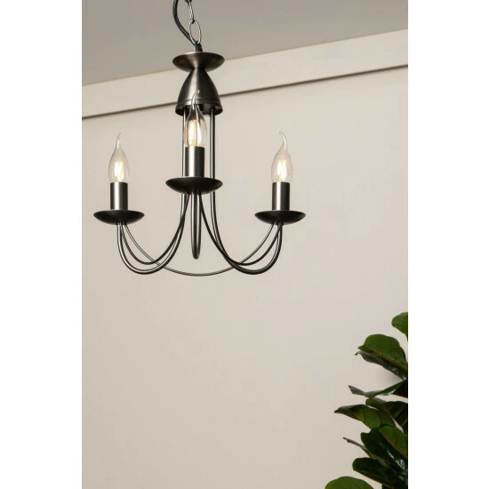 Dimensions (HD): 50 x 34cm.Adjustable height of up to: 137cm.Weight: 1.8kg.Material: Metal.Not suitable for use with dimmer switches.Bulb type: Maximum 6W E14 Small Edison Screw.Number of bulbs required: 3 (not included).Remove light from fitting and wipe carefully with a clean, dry cloth.Requires self-assembly (instructions included)