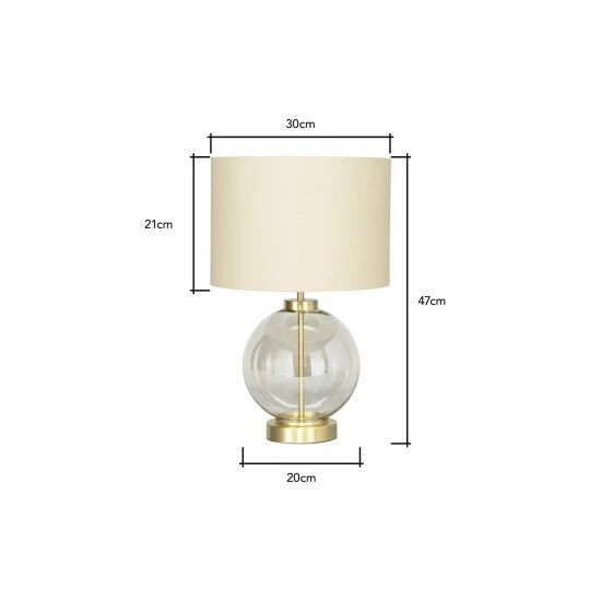 Dimensions (HD): 47 x 20cm. Weight: 1.8kg. Material: Glass. Bulb type: Maximum 10W, E27 Edison Screw. Number of bulbs required: 1 (not included). Remove light from fitting and wipe carefully with a clean, dry cloth. Requires self-assembly (instructions included)